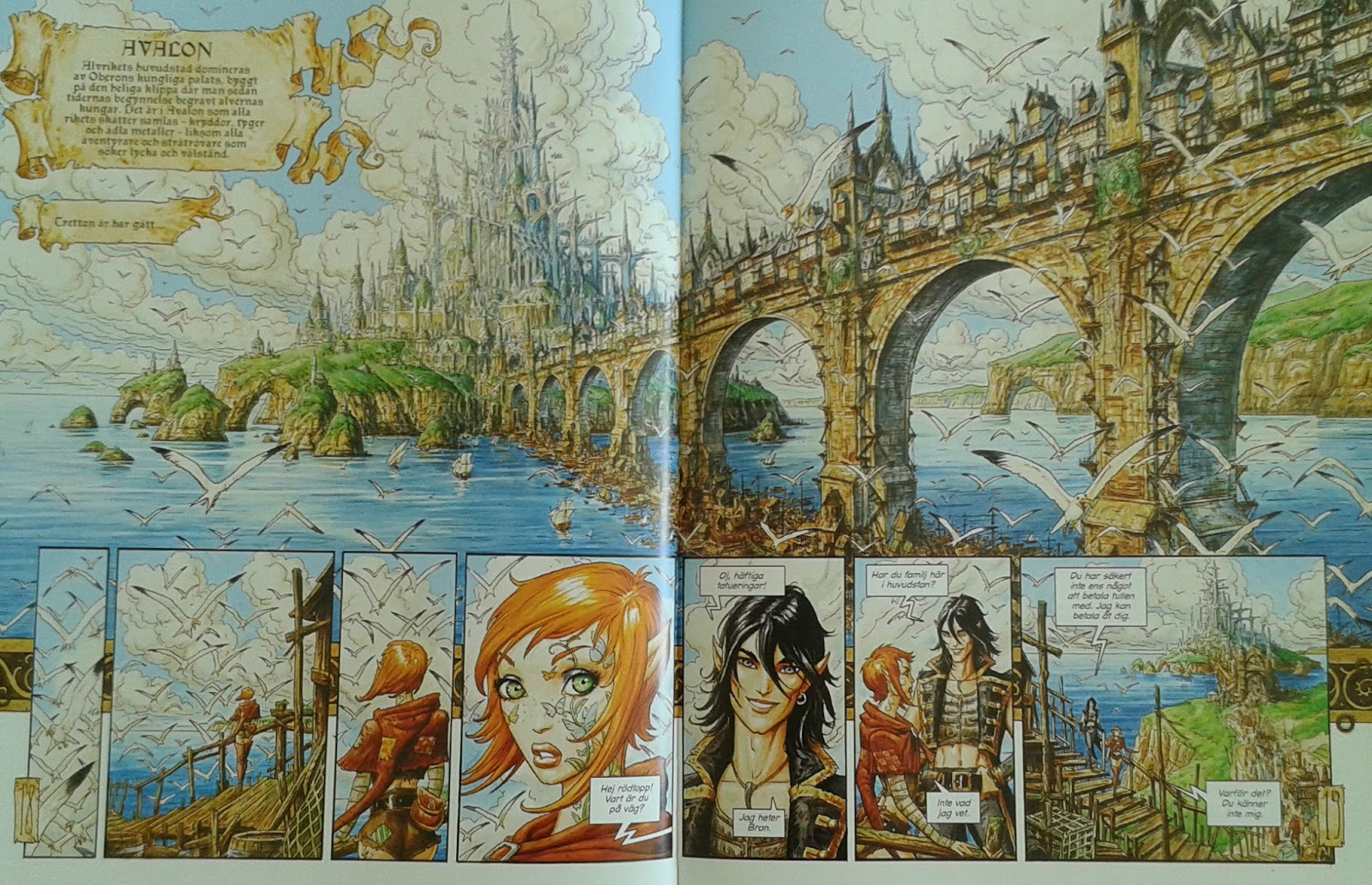 Fransmännen Thomas Day, manus, och Olivier Ledroit, teckningar, berättar en traditionell fantasyhistoria kryddad med steampunkinslag – och ja, det är väldigt förvirrat. Förvirringen beror främst på Days och Ledroits sätt att göra serier.