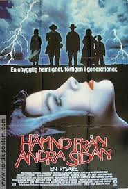 HÄMND FRÅN ANDRA SIDAN (DEADLY BLESSING) från 1981 ståtade med Sharon Stone i sin första större roll. Jag har sett den här filmen, men jag minns ingenting alls av den. Då minns jag TRÄSKMANNEN från 1982 desto bättre. Den här filmen bygger på den klassiska serietidningen och den fick väldigt dålig kritik – främst klagades det på den illa gjorda monsterdräkterna; det ser ut som om det är mupparna som drabbar samman i träsket. Jag tycker dock att filmen är charmig och kul.