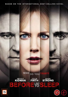 Enligt IMDb hade BEFORE I GO TO SLEEP svensk biopremiär i april i år. Om detta verkligen stämmer vet jag inte – jag har inget minne av att den gått upp på bio någonstans. Kanske enbart i Stockholm? Nåja, nu finns filmen ute på DVD och Blu-ray.
