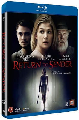 RETURN TO SENDER, regisserad av Foud Mikati, är ännu en film jag började titta på utan att först ha läst baksidestexten (det var för mörkt i rummet), eller något annat om filmen. Rosamund Pike och Nick Nolte, och Pike poserar med en slägga på omslaget – tja, det kan kanske vara någonting, tänkte jag.