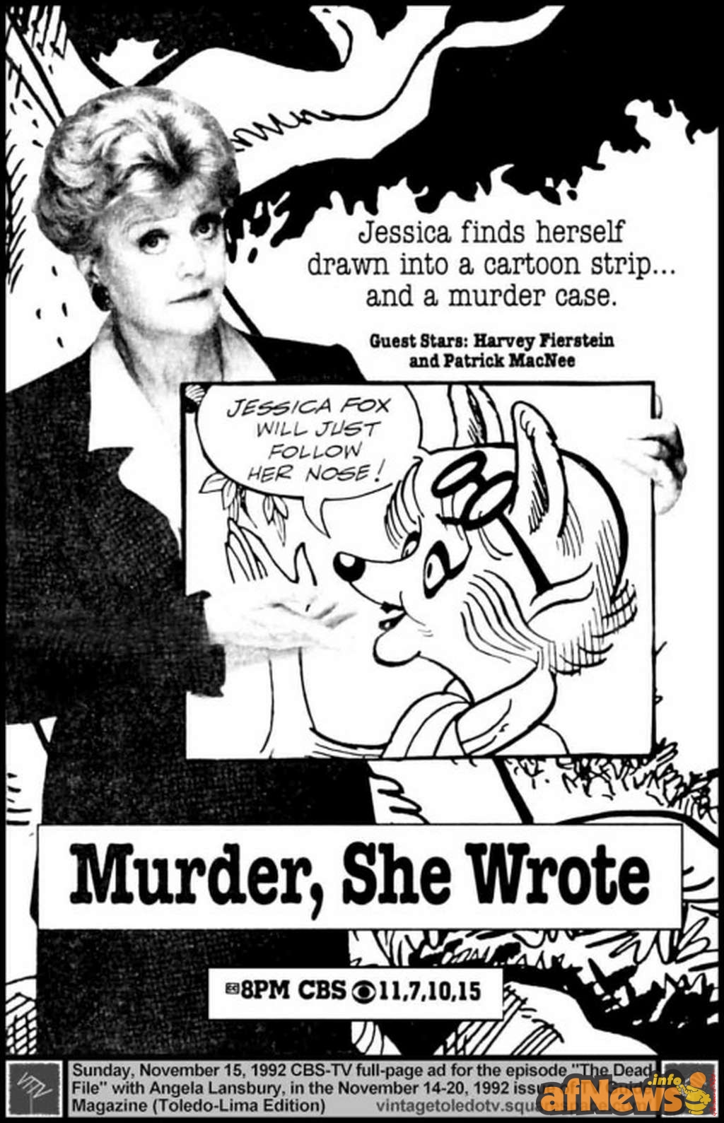 1992 förekom Dick Hodgins i ett avsnitt av TV-serien MORD OCH INGA VISOR. Okej, Hodgins själv syntes inte i bild, men avsnittet handlar om att hjältinnan Jessica Fletcher (Angela Lansbury) blivit seriefigur: Jessica Fox. Harvey Fierstein spelar serietecknaren, men kyss Karlsson om in Mell Lazarus medverkar i en liten roll! Lazarus är mannen bakom serierna Våran fröken och Mamsen.