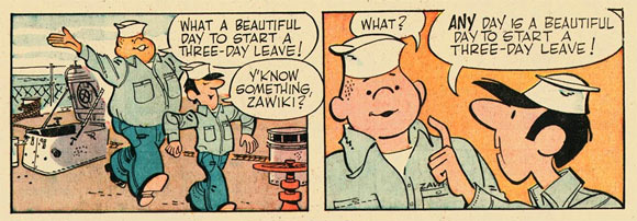 Jag har inte sett till Kalle Blåst sedan dess, men i original hette serien Half Hitch. Den skapades 1943 av Hank Ketcham (Dennis), lades ner några år senare, men återupplivades på 60-talet, då med manus av Bob Saylor och tecknad av, just det, Dick Hodgins.