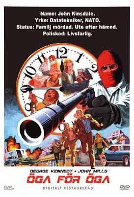 ÖGA FÖR ÖGA är en vanligt förekommande titel. Just den här heter THE ”HUMAN” FACTOR i original. Jag har aldrig tidigare hört talas om denna actionthriller, men det är en brittisk-italiensk samproduktion från 1975. För regin står legendaren Edward Dmytryk (MYTERIET PÅ CAINE), och minsann om inte Ennio Morricone komponerat musiken, som för mig är lika okänd (och ohörd) som filmen.