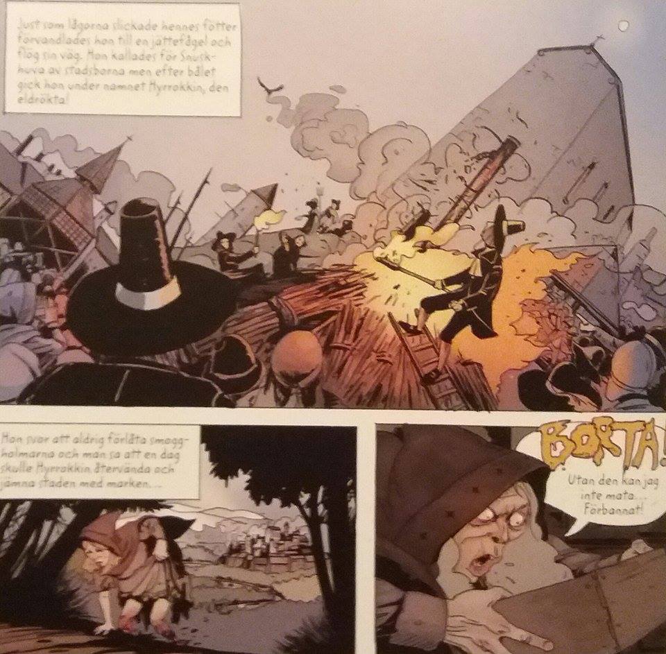 Jag utgår från att det är Maxén själv som står för den utomordentliga, synnerligen stämningsfulla färgläggningen. Denna tillför oerhört mycket, och man tänker inte på de ibland grova teckningarna. Helhetsintrycket är ytterst elegant.