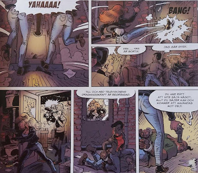 Den här serien visade sig vara rätt bra. Teckningarna är kompetenta om än inte riktigt i min smak; det ser väldigt belgiskt ut, men saknar den där touchen som lyfter serien. Men den intrikata historien faller mig i smaken, åtminstone under ”Klassfotot”. Jag satt hela tiden och undrade hur allt hängde ihop och läste nyfiket vidare. Upplösningen i ”Lake Wakanala” är något svagare. I detta album medverkar vår hjältinna genomgående.