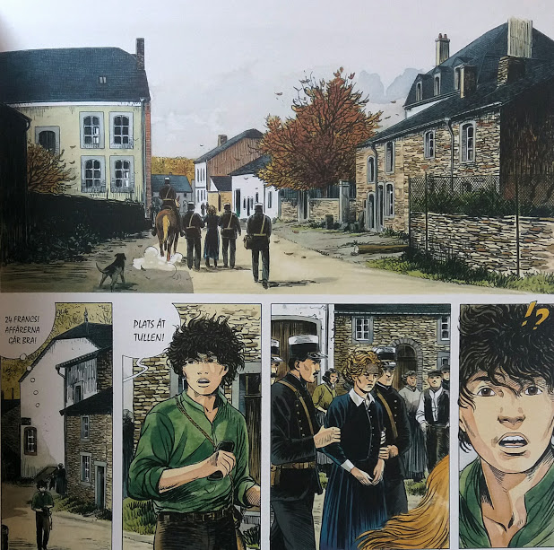 Vad jag också undrade över var varför seriens huvudpersoner; några kvinnor, smugglar kaffe från Belgien till Frankrike. Nu vet jag förstås ingenting om hur det låg till i Frankrike åren innan första världskriget. Kanske smugglades varor rent allmänt, och just de här specialiserade sig på kaffe? Var det skriande brist på kaffe i Frankrike? Tullare och poliser jagar dessa kaffesmugglare som vore det knark och vapen de fraktar över gränsen.