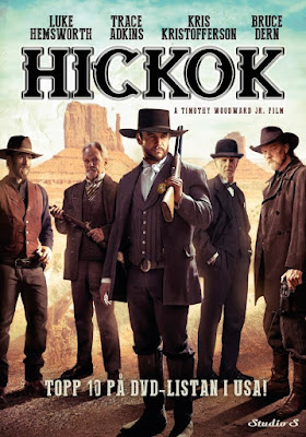 HICKOK, i regi av Timothy Woodward Jr, tillhör inte de allra billigaste westernfilmerna – de senaste åren har jag försökt se ett par filmer det var helt omöjligt att se mer än en kvart av. Woodward har lyckats anlita en handfull kända namn till sin film; Kris Kristofferson (som numera ser ut som ett stycke intorkat läder) har en hyfsat stor roll, Bruce Dern har en väldigt liten, obetydligt biroll, medan Luke Hemsworth (storebror till Chris och Liam) innehar titelrollen som Vilde Bill Hickok.