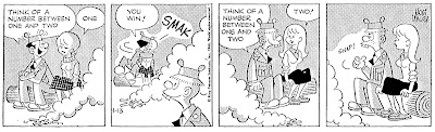 Jag gjorde en stor grej av denna bild, jag gick ut på bred front och skröt med att självaste Mort Walker skulle medverka i mitt lilla fanzine. Jag publicerade bilden över mittuppslaget – och läsarna blev besvikna. Var det inte mer? Det där var ju bara ett gratulationskort!