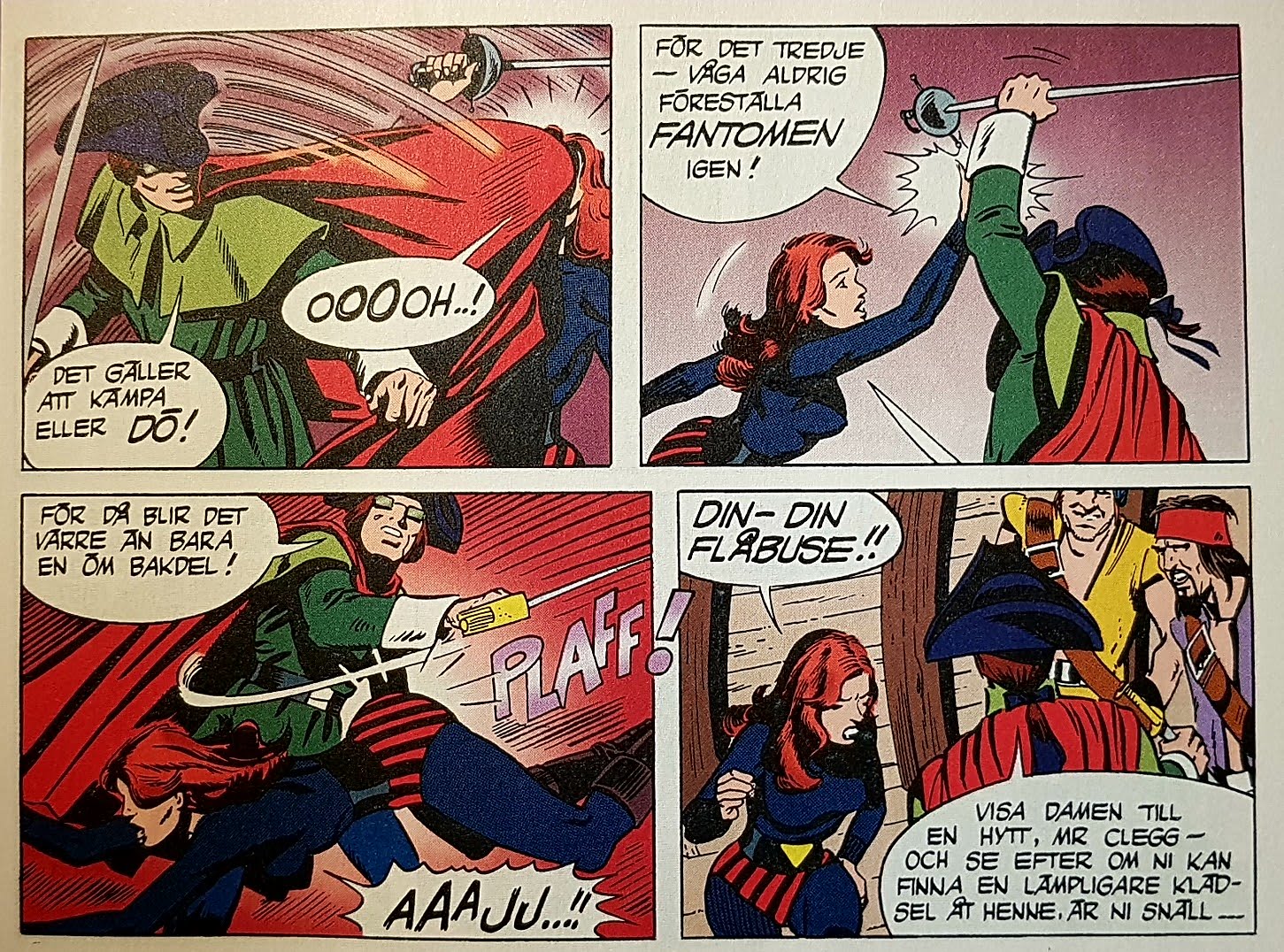 Nå. Nu finns alltså serien i det nummer av tidningen som ligger ute i butiker just nu. Nu har jag läst äventyret. Den här gången har man skippat ”Piratbruden” från titeln och kallar serien enbart för ”Flame”, och färgläggningen är ny – denna är sannolikt betydligt bättre än den från 1980. Tydligen var även det gamla albumet dåligt limmat i rygen, så att sidorna trillade ut och man fick serien i lösbladssystem.