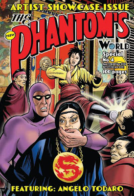 ”Shangri-la” har tecknats av italienaren Angelo Todaro, en man i mogen ålder. Faktum är att han ritade Fantomen redan på 1960-talet; de där konstiga italienska italienska äventyren som den svenska redaktionen fick bearbeta för att de skulle kunna publiceras. Todaro har även ritat skräckserier, sexserier, westerns, och serier som i Sverige publicerades i den konstiga tidningen Razzia, vilken jag skrev om HÄR. The Phantom’s World Special nr 4 innehåller enbart serier tecknade av Angelo Todaro. Det andra, tvådelade äventyret har han själv skrivit manus till.