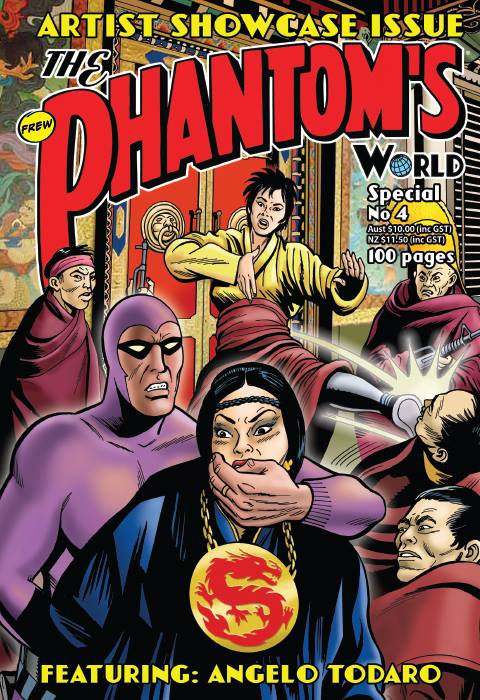 ”Shangri-la” har tecknats av italienaren Angelo Todaro, en man i mogen ålder. Faktum är att han ritade Fantomen redan på 1960-talet; de där konstiga italienska italienska äventyren som den svenska redaktionen fick bearbeta för att de skulle kunna publiceras. Todaro har även ritat skräckserier, sexserier, westerns, och serier som i Sverige publicerades i den konstiga tidningen Razzia, vilken jag skrev om HÄR. The Phantom’s World Special nr 4 innehåller enbart serier tecknade av Angelo Todaro. Det andra, tvådelade äventyret har han själv skrivit manus till.