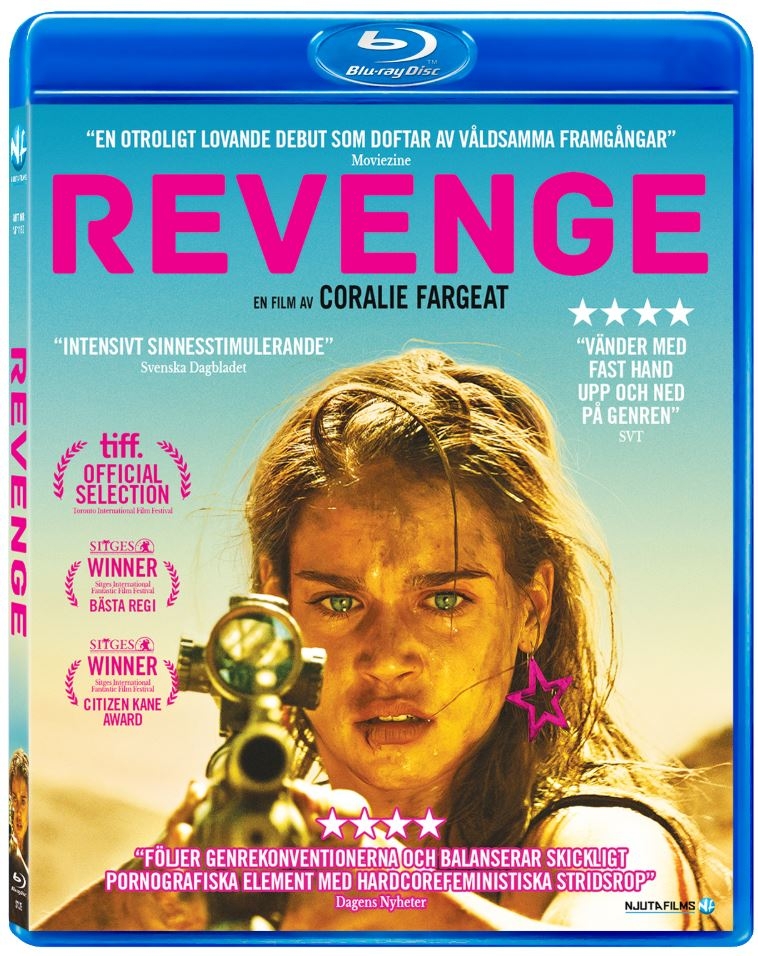 Omslaget till REVENGE, med manus och regi av Coralie Fargeat, är nerlusat med recensionscitat. Det pratas om feminism, MeToo-debatten, och om att det vänds upp och ner på genren. Således förväntade jag mig att denna rape & revenge-film skulle vara en intensiv, obehaglig, politisk och utmanande film.