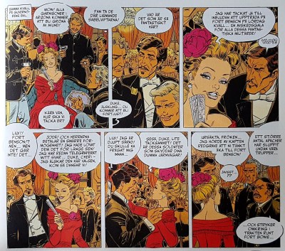 2. Jag tycker också att Knäckta Näsan är seriens höjdpunkt. Men de sista fem albumen som Giraud gjorde själv är också väldigt imponerande och jag ser fram emot att snart gå läsa dem på svenska.Jag tror knappt vi träffades ens men jag är en av typerna från Lund som fick kopiera dina Tim Kincaid-rullar under 90-talet. Via Måna som jag tror läste Drama Teater Film med mina polare.