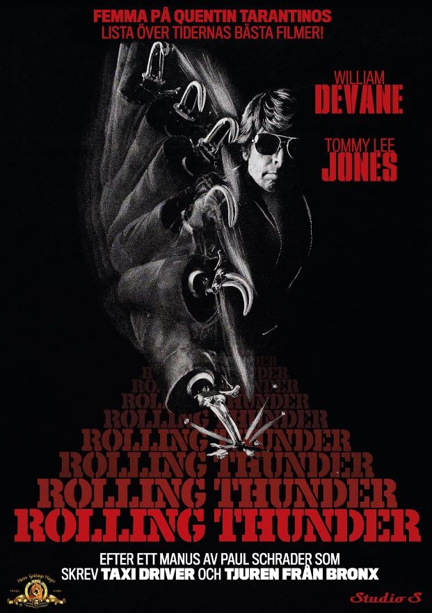 När ROLLING THUNDER gick upp på bio i Sverige 1977 hade biografbyrån gjort fem feta klipp på sammanlagt drygt sex minuter. I stort sett alla vålds- och actionscener hade kortats eller plockats bort helt och hållet, vilket renderade filmen obegriplig. Jag har inte sett den versionen. Jag har ett svagt minne av att jag såg filmen på en hylla i en videobutik, men jag minns inte om jag hyrde den. Däremot såg jag filmen på TV, oklippt, någon gång på 1990-talet, och jag blev lite besviken.