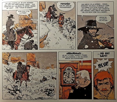 Den här gången är det inte Jean Giraud som har tecknat; det jobbet har Giraud överlämnat till William Vance – Vance dog i våras, min nekrolog över honom finns HÄR. Däremor står Giraud för manuset.