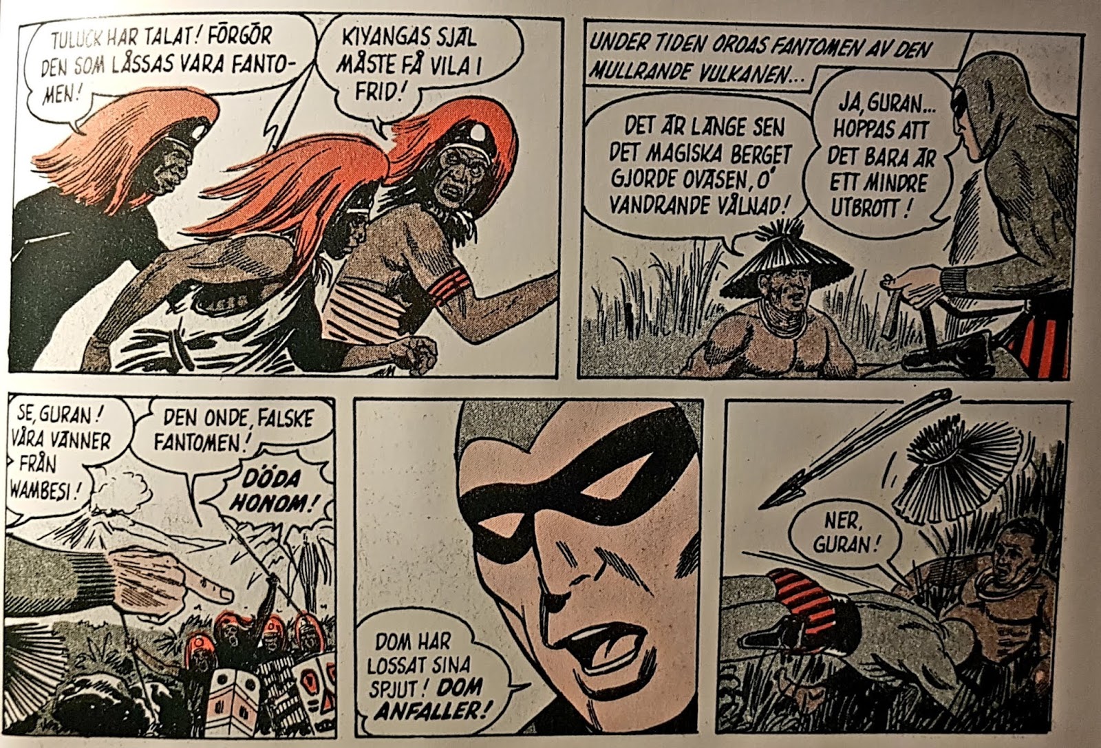 Efter femton sidor övergår detta äventyr i ”Mystery of Wamba Falls Inn”, ett söndagsäventyr av Lee Falk och Sy Barry från 1965, vilket publicerats flera gånger som ”Hotell Wambafallet”. Denna historia har förstås inget med serien av Harris och Lignante att göra. Söndagsserien är bättre än den amerikanska serietidningsserien, men den kan inte mäta sig med Team Fantomens svenskproducerade äventyr.