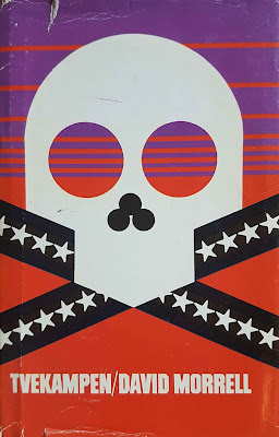 Kort därpå upptäckte jag att FIRST BLOOD bygger på en roman från 1972 av David Morrell – och minsann, det var ju Bra Böcker-boken ”Tvekampen”, som stått på mina föräldrars bokhylla sedan jag var liten glytt – som barn hade jag fascinerats av den stiliserade dödskallen på omslaget. Som tonåring läste jag boken, och tyckte att den var ohyggligt bra – och jag blev lite konfunderad när Rambo dog på slutet. I filmen överlevde han ju.