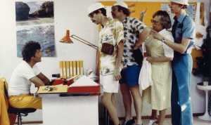 Plötsligt kom biografmaskinisten ut. Jag minns inte varför, men förställningen fick ställas in. Vi blev först besvikna – men sedan kom vi på att SÄLLSKAPSRESAN hade premiär samma kväll på Rio ett par kvarter bort. Det här var alltså på den tiden då filmer inte hade premiär samma datum i hela landet. 35mm-kopior valsade runt, och ibland kunde det dröja månader innan filmerna kom till Landskrona. Vi hade förstås tänkt se SÄLLSKAPSRESAN i vilket fall som helst, så vi gick till Rio och såg filmen.