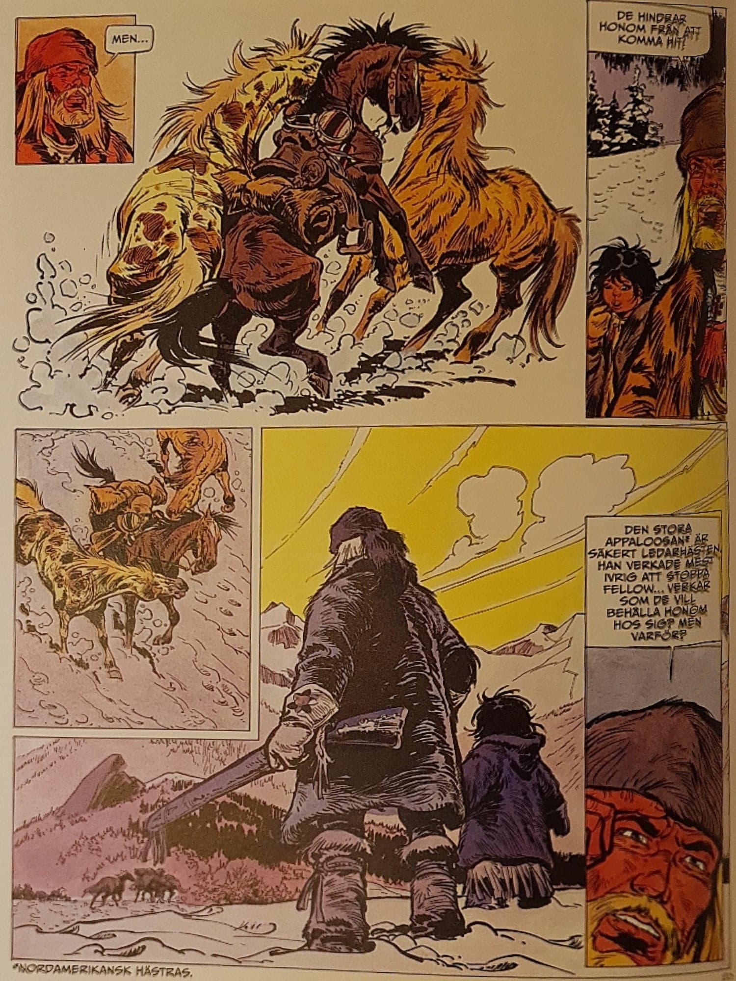 En detalj jag var lite mindre förtjust i när jag var barn, var att det gick så väldigt snabbt att läsa Buddy Longway-albumen. Jag ägde inga själv, jag lånade dem på biblioteket, men jag vill minnas att även om jag tyckte att albumen var bra, ville jag inte lägga dyra pengar på album som plöjdes igenom på nolltid. Buddy Longway innehåller nämligen väldigt lite text, dialogerna är få, och rutorna är ofta stora. Jag tyckte att scenerierna var fantastiska, jag gillade Deribs teckningsstil, men jag ville ha mer. Mer av allt.
