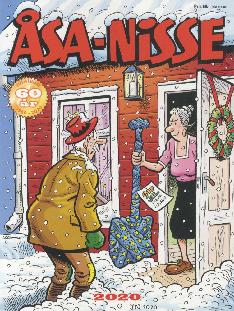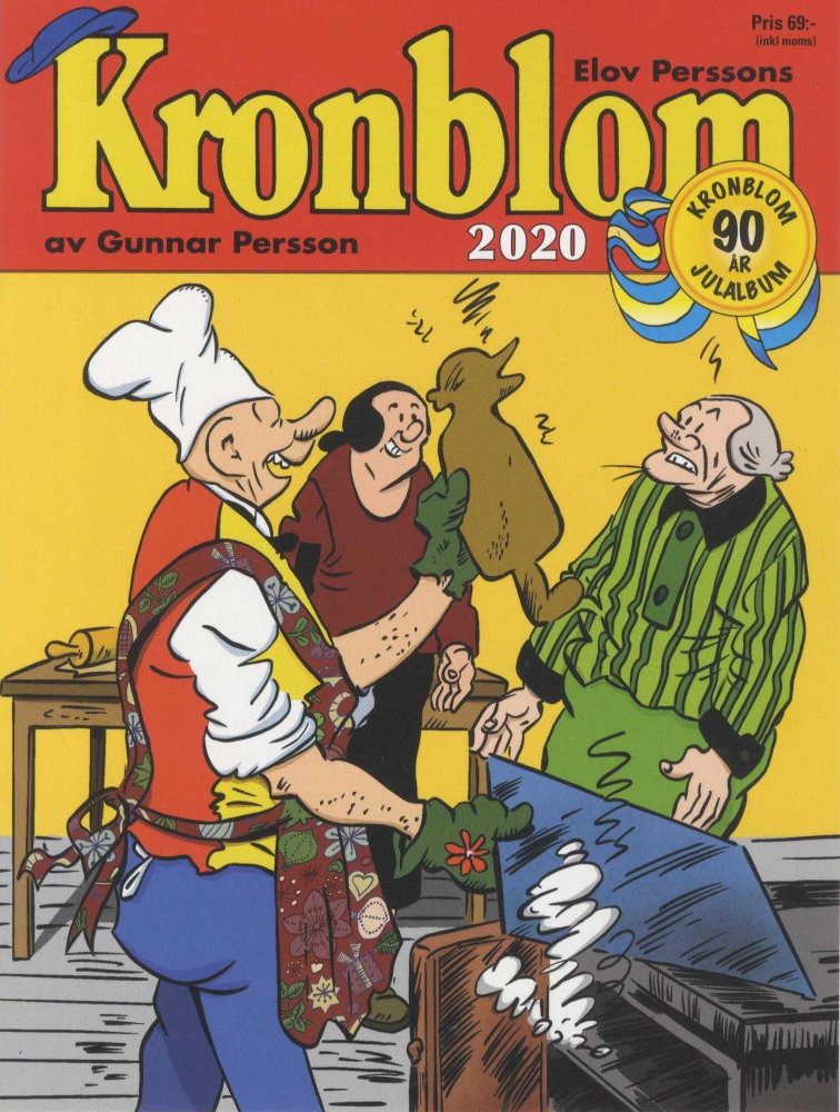 Så kommer vi till två serier jag inte själv jobbar med. Vi åker från Mjölhagen till Vinkelboda, där Kronblom och hans Malin bor. Liksom tidigare år handlar det om ensidor från Allers. De flesta sidorna kommer från 2004, men av någon anledning publiceras de inte i ordning. De två sista episoderna i albumet är från 2005 och 2006. Jag har på sistone kommit på mig med att gilla Kronblom – förr var jag inte så förtjust i serien och jag hoppade ofta över den, men sedan ett par år repriserar 91:an avsnitt från 80-talet, och det verkar ha varit en period då Gunnar Persson var inspirerad. Precis som fallet är med 91:ans julalbum, varierar rolighetsgraden en hel del i Kronblom 2020. Ibland är det roligt, ibland är det märkligt tunt. Kronblom vinner dock på att det är en serie som har en tendens att vara, som vi sa på 90-talet, bisarr.
