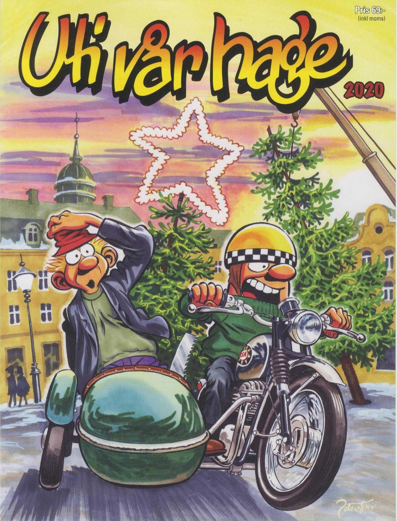 Nu tar vi oss från Knohult till Mjölhagen. Uti vår hages julalbum 2020 utmärker sig genom att vara fruktansvärt roligt rakt igenom. Originalpublicering av avsnitten i albumet är inte utsatt, så jag vet inte när de trycktes första gången, men urvalet är jättebra. Jag kom på mig själv med att skratta högt åt en del skämt och absurda vändningar, och det händer ju sällan att man skrattar högt när man läser serier. Krister Petersson tecknar otroligt bra, men jag tror att hans största styrka är dialogen, det är denna som, i kombination med flängd handling, lyfter serien. Uti vår hage har ett levande språk och många repliker är fullkomligt oväntade. Detta innebär att serien kan innehålla långa scener med enbart dialog utan att det blir träigt och tråkigt.