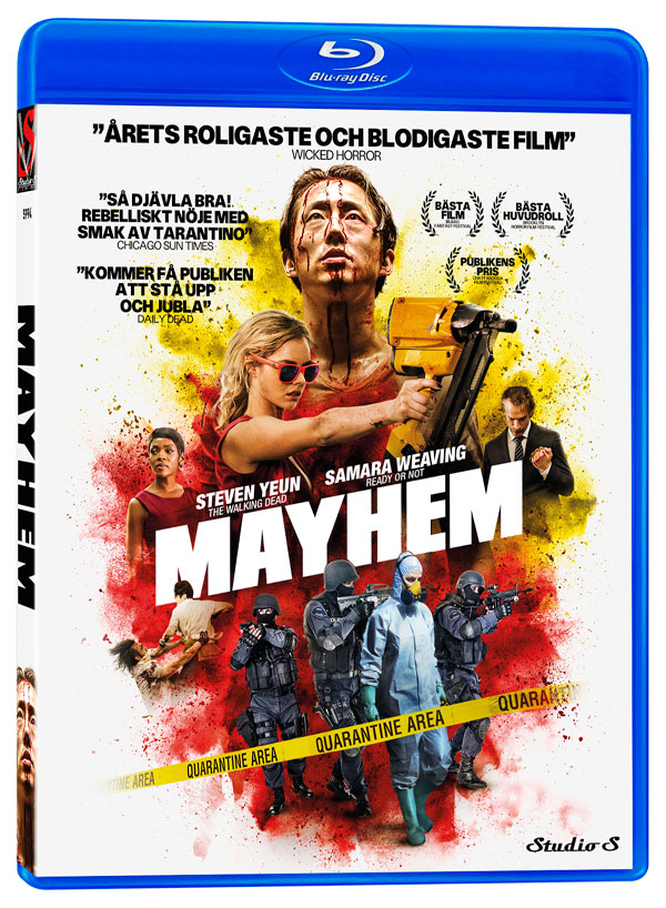 Jag tyckte att MAYHEM, som är inspelad i Belgrad, var väldigt underhållande och kul. Här finns några roliga repliker, en diskussion om hårdrock, och flera uppfinningsrika scener. Det inrutade kontorskomplexet är ett helvete både före- och efter virusapokalypsen.
