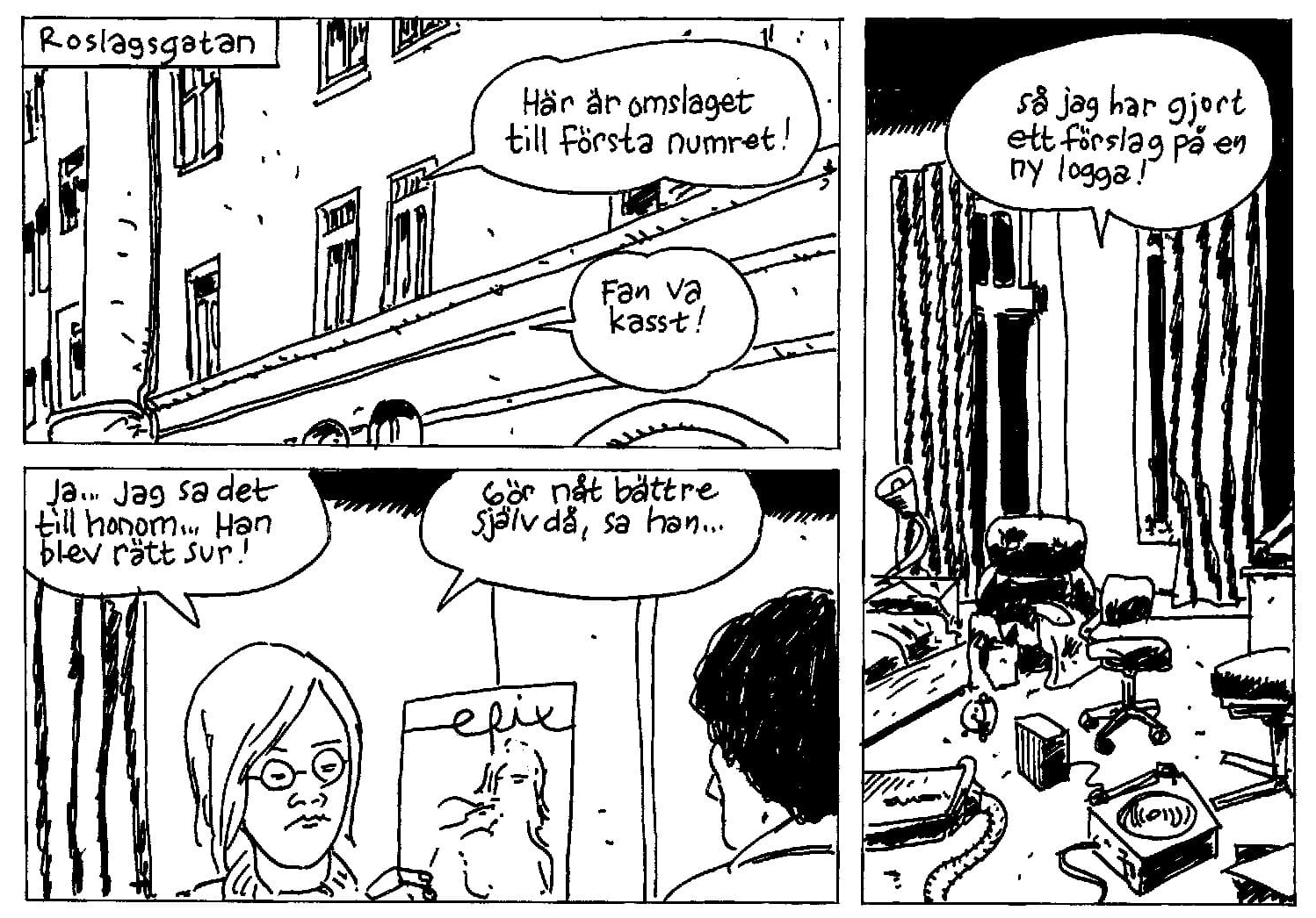 Ibland blir jag konfunderad när jag läser intervjuer med svenska serieskapare, och de säger att de inte ritade några serier alls under uppväxten, de gjorde sina första serier först som vuxna. Det kan även hända att de påstår att de inte läste serier alls när de växte upp; inte mer än Kalle Anka och Bamse när de var barn. Jag tycker att sådana uttalanden är konstiga. Jag menar, varför ska de då plötsligt rita serier? Det är som om jag skulle ge mig på att skriva poesi, eller ägna mig åt något annat jag inte har någon som helst relation till. Det skulle kunna bli bra, mer det är mer troligt att det blir skit. Serier, däremot, är min naturliga konstnärliga uttrycksform.