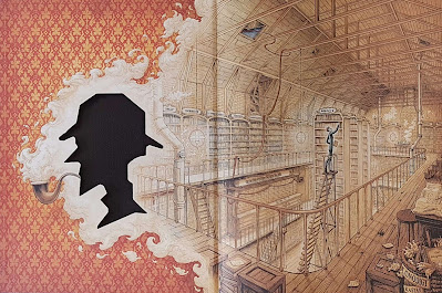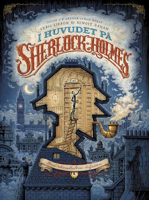 Jag kom att tänka på detta när jag fick detta nya seriealbum, med manus av Cyril Liéron och teckningar av Benoit Dahan, i översättning av Björn Wahlberg. Till att börja med skapade redan omslaget lite extra intresse, eftersom Sherlock Holmes’ huvud är utskuret; det är ett hål i kartongen, och vi tittar rakt in i boken – eller, ja, rakt in i Sherlock Holmes’ huvud.