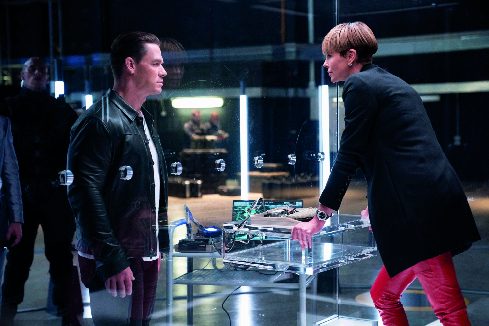 Hopp till nutid. Dom har en liten son han döpt till Brian, efter Paul Walkers rollfigur – Walker omkom i verkliga livet, men i filmen lever hans rollfigur än, dock syns han aldrig. Dom pratar med sin grabb om Gud, eftersom det här är en religiös film. På Doms gård häckar även Letty (Michelle Rodriguez). Några andra i gänget dyker upp. Kurt Russells kostymkille har skickat ett mystiskt och avbrutet meddelande. De beger sig iväg för att hitta en teknisk mackapär som ser ut som en kalott i metall. Men då dyker Jakob upp och knycker prylen. Dom har inte sett Jakob på evigheter. Jakob tillhör skurkarna. Han jobbar för Cipher, som alltså sitter i en låda. Eller, låda och låda, hon är inlåst i en glasbur.