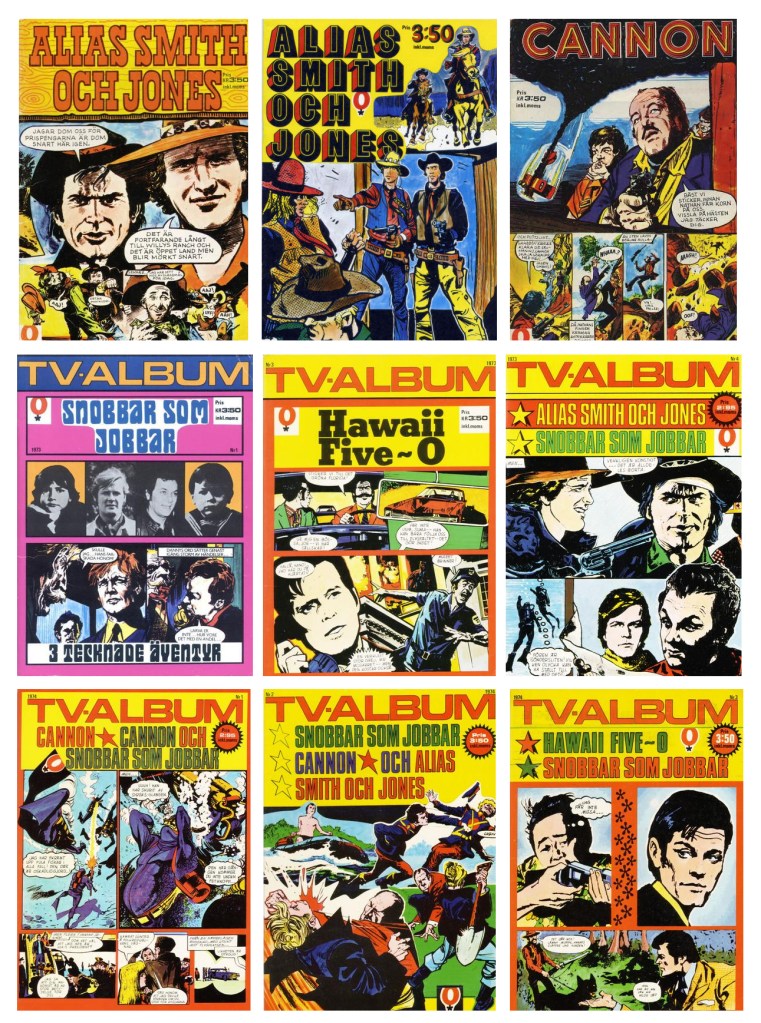 Serier man gillade på TV läste man gärna i serietidningar. Tidningen Helgonet gick säkert bra, med hjälten naturligtvis lik Roger Moore. Hans motsats var den inte alls snygge utan tjocke och flåsige amerikanske kommissarie Cannon, som fanns i tidningen TV-serier – och behärskade karate. Men tidningen sålde dåligt och slogs ihop med en gammal trotjänare till Buffalo med TV-serier. Åhlén & Åkerlunds Förlag dominerade, men Williams Förlag hade tidningen Maverick med den snygge djärve gamblern John Maverick spelande poker på vilda västerns salooner och lite lyxigare horhus. Serien var inte så där stundtals töntig som på TV, där aktören James Garner i rollen var en smula clown-aktig. Men tidningen Mannen från U.N.C.L.E. – jag fick mig ett medlemskort och blev (enligt texten på baksidan) agent i denna organisation för att rädda vår värld från skurkar(!). Tja, jag blev inte ordinarie agent ute på fältet men skulle hålla mig i trim som reserv och kunna rycka in inom 24 timmar, sa texten.