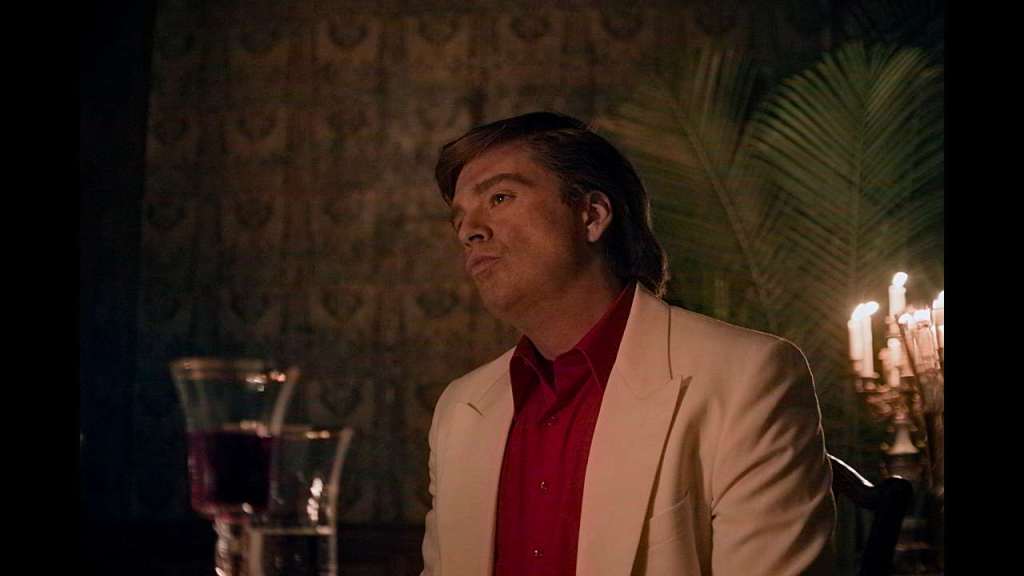 I början av filmen lierar Trump sig med advokaten och fixaren Roy Cohn (Jeremy Strong), en fullkomligt hänsynslös man som går över lik och som omger sig med diverse skumma existenser. Den osympatiske Cohn håller gärna till i de bakre rummen på restauranger och nattklubbar, när han inte har sprit- och kokainindränkta fester hemma hos sig.