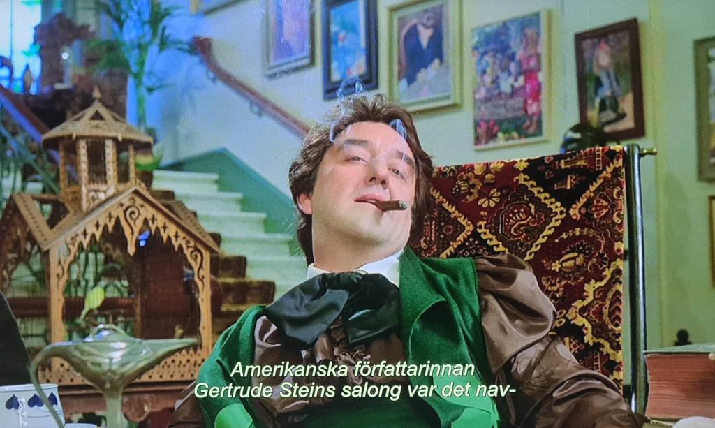 Jag har inte ens nämnt Birgitta Andersson som Ingrid Svensson-Guggenheim, Rolv Wesenlund som elekrikern Grieg, Margaretha Krook som Picassos mor, Per Oscarsson som Apollinaire, och Lena Olin i en tidig roll, men jag känner att jag måste sätta punkt här, jag hade kunnat skriva hur mycket som helst om den här filmen. Jag hade till exempel kunnat ta upp pruttbaletten.