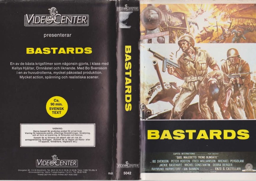 Att filmen totalförbjudits för biovisning hindrade inte VTC från att släppa den på hyrvideo i början av 80-talet. Den släpptes åtminstone två gånger, den ena gången med guldomslag och en gång med titeln BASTARDS. Jag hade ett exemplar av denna gamla hyrfilm, jag minns en gång när jag och en kompis satt hemma hos mig och drack kaffe eller sprit och tittade på filmen, min kompis hade aldrig sett den. Vi skrattade glatt, i synnerhet när det i den svenska texten i en scen mot slutet stod ”Titta! Officerarna trillar av tåget!”.