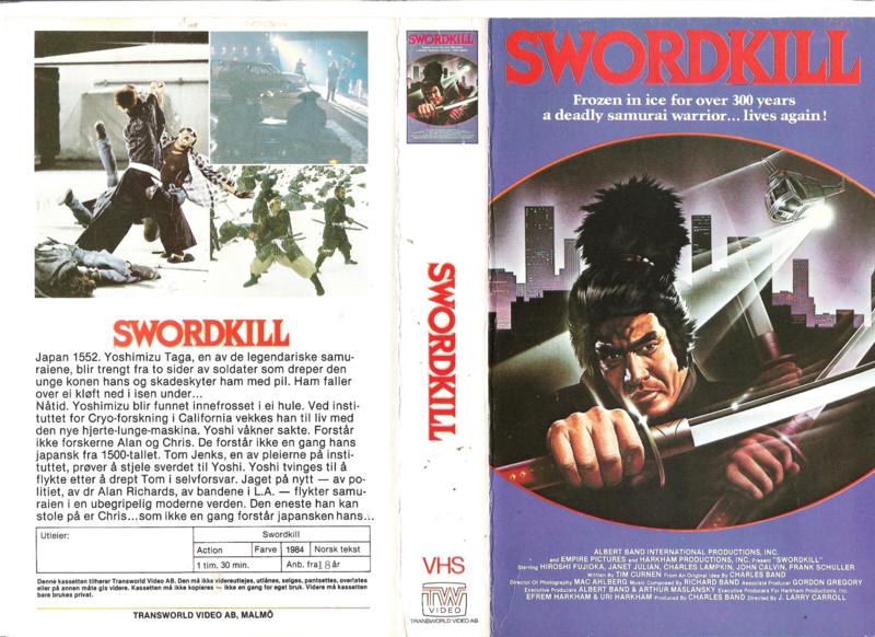 Kommer ni ihåg SWORDKILL? Det är en B-film från Empire Pictures som kom 1984 och som även har den sämre alternativtiteln GHOST WARRIOR. Den handlar om en samuraj som under en strid på 1500-talet träffas av en pil och trillar när i en sjö, i vilken han blir infryst. 1984 hittas han och tinas upp. Av diverse skäl är han nu i Los Angeles, där han bråkar med en TV, blir vän med en tjusig kvinna, och går runt på stan som en samuraj-Bronson och skivar upp drägg. Jag hyrde SWORDKILL när den släpptes på video i Sverige och tyckte att den var ascool. Jag såg om den häromåret och tyckte nu att den var lite mindre ascool.