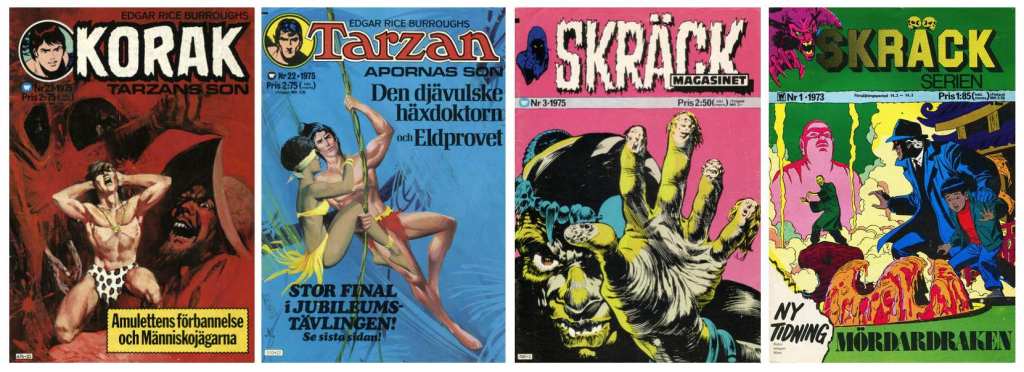 Det korta formatet fungerade förstås betydligt bättre i de skräcktidningar som innehöll material från DC Comics, som till exempel Skräckmagasinet. Tre-fyra, ibland fem, avslutade serienoveller med en knorr på slutet. Sedan fanns det serier som inte funkade alls, oavsett längd – som till exempel de svenskproducerade äventyren i Korak. De var inte bara obegripliga, de var även synnerligen illa tecknade. Och då ska vi inte tala om de tyska deckarserier som fanns i den kortlivade tidningen Razzia (som jag skrivit om HÄR) – där är förvirringen total och serierna är fullkomligt oläsliga.