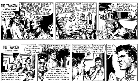 Sedan finns det förstås gott om otroligt skickliga tecknare som verkligen inte kan skriva egna manus, men som ändå insisterar på att göra det. Snygga teckningar kan ibland lyfta ett mediokert manus, men aldrig ett dåligt manus. Samtidigt kan fula, dåliga teckningar sänka ett bra manus – dåliga teckningar kan leda till att man inte ens bryr sig om att läsa serien. I ”Comics – den stora serieboken 8”, 1975, stod det om Tug Transom av Peter O’Donnell och Alfred Sindall att många nog kommer att läsa serien sist av de olika serierna i albumet, eftersom den ser så tråkig ut, men att många kommer att vilja läsa fler äventyr med Transom. Det slår mig nu att jag fortfarande inte har läst Tug Transom-äventyret i det albumet. Det är mer än 40 år sedan jag köpte det på bokrean.