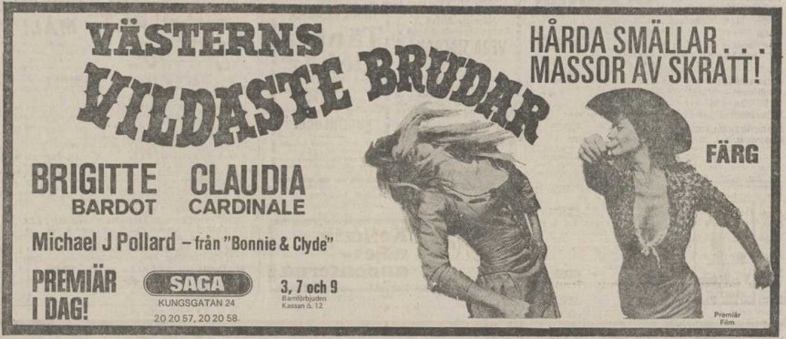 1971 möttes Brigitte Bardot och Claudia Cardinale i västernfilmen VÄSTERNS VILDASTE BRUDAR. Den är inte speciellt bra, men den är värd att se rack vare huvudrollsinnehaverskorna.