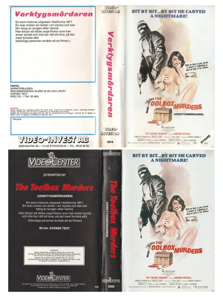 Vid sidan av MOTORSÅGSMASSAKERN är VERKTYGSMÖRDAREN (THE TOOLBOX MURDERS) från 1978 antagligen den mest ihågkomna filmen från TV-programmet Studio S’ avsnitt om videovåldet, vilket sändes i december 1980. I programmet visades några snuttar ur filmens mest beryktade scen. När DVD-boxen STUDIO S & VIDEOVÅLDET släpptes 2011 skrev jag en väldigt kort recension av filmen, nu passar jag på att ta ut svängarna ordentligt.