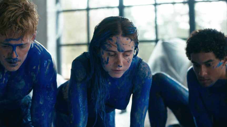 Killarna, som fortfarande tror att kvinnan är Annika Franke, klär av sig till kalsingarna, smetar lite färg på sig, rör sig koreograferat och fäller högtravande repliker. Kvinnan är inte så imponerad. Hon klär av sig i underkläderna och kletar in sig med färg. Nu smetar alla färg på sig. Vad hände med de där grenarna killarna släpat med till huset?