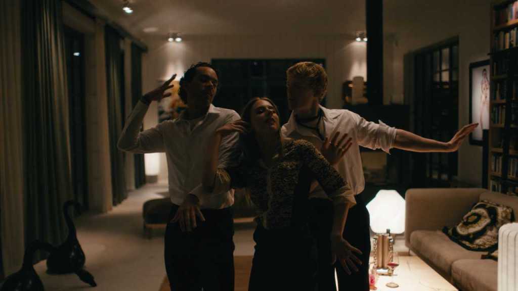 Nu ska de tre partaja. De dricker Frankes sprit. De utbrister i koreograferad dans. Salle verkar vara lite tänd på kvinnan. Gustav verkar vara lite tänd på kvinnan. Men Gustav verkar även vara tänd på Salle och kysser honom.